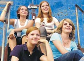 Spielen mit sieben Acts beim 3. Mädchenband-Festival: Elliot alias Lisa Cukuranovic (14) und Hannah Heise-Metzscher (14, oben v. l.), Josephine Raulf (13) und Madita Standke-Erdmann (14, v. l.).